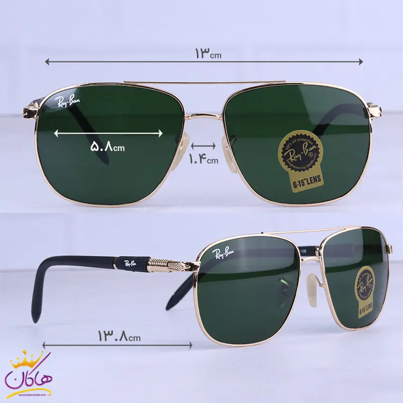 ابعاد عینک آفتابی ری بن مردانه طلایی خلبانی RB 5701/2