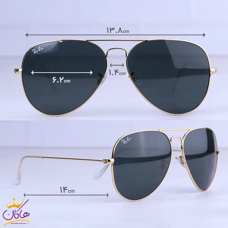 ابعاد عینک آفتابی ری بن مردانه فریم طلایی خلبانی 3026/3
