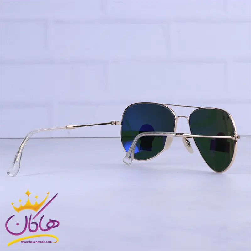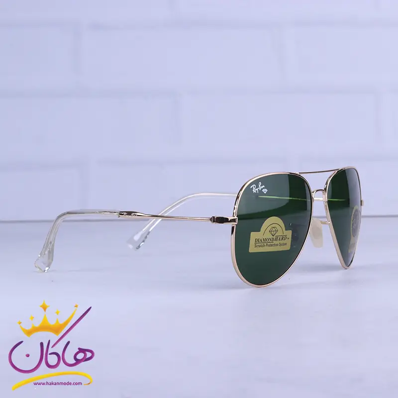 ابعاد عینک آفتابی ری بن مردانه فلزی طلایی شیشه سبز RB 3026 F /2