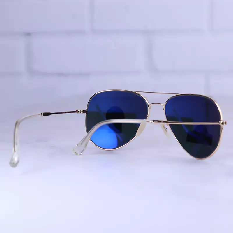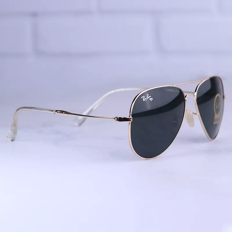 عینک آفتابی ری بن مردانه فلزی طلایی عدسی مشکی RB 3026 F/5 از نظر قیمت در حد متوسط و از نظر کیفیت از بهترین نمونه های عینک “های کپی” است. بدنه عینک از فلز طلایی رنگ ساخته شده که وزن متوسط و مقاومت بالایی دارد. عدسی آن، از نوع شیشه سنگ است (این شیشه از نوعی سنگ بدست آمده است) که به علت ضدخش بودن، برای عینکهای پرکاربرد بسیار مناسب است. سبک بودن جنس فریم و داشتن انعطاف نسبی از دلایل محبوبیت این عینکهاست. عدسی این عینک از نوع یو وی 400 است که از چشم در برابر اشعه خورشید به خوبی مراقبت میکند.