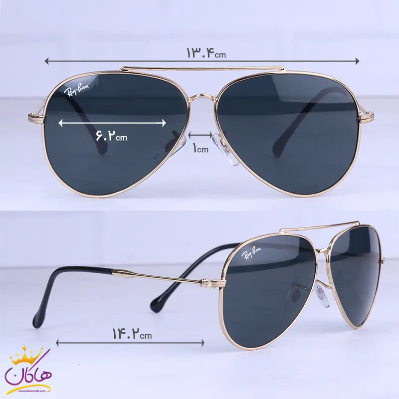 ابعاد عینک آفتابی ری بن مردانه فلزی فریم طلایی خلبانی RB 1018/2