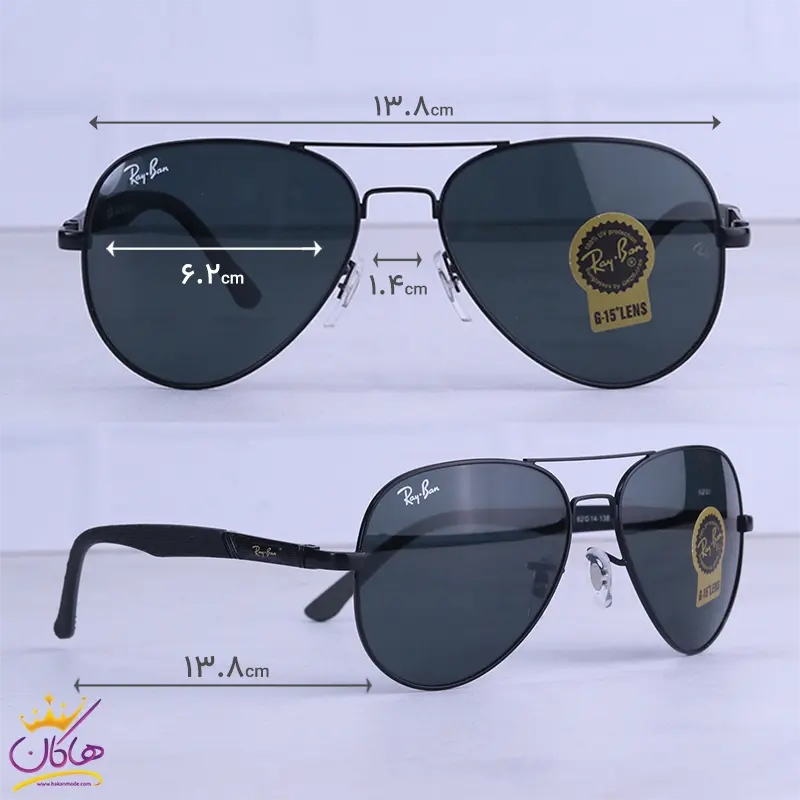 ابعاد عینک آفتابی ری بن مردانه فلزی مشکی خلبانی RB 5118/1