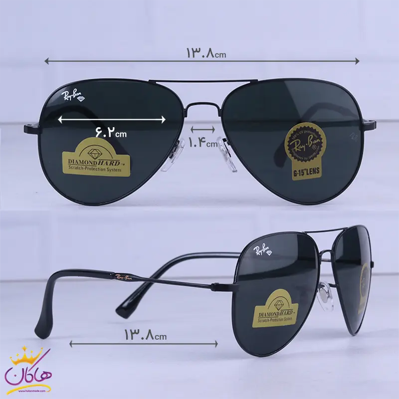 ابعاد عینک آفتابی ری بن مردانه فلزی مشکی RB 3026 F/3