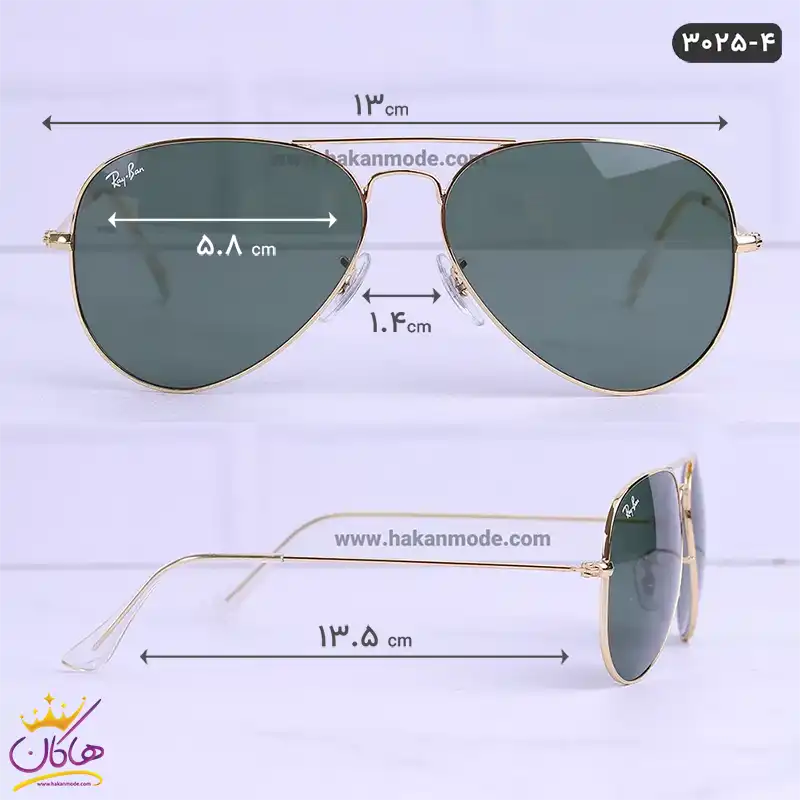 ابعاد عینک آفتابی ری بن مردانه خلبانی مدل 3025