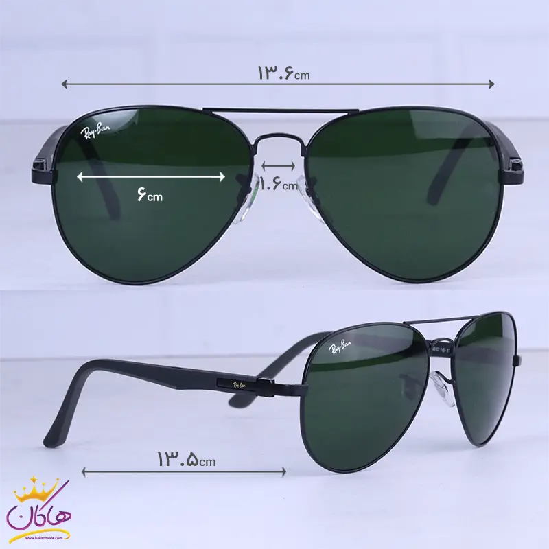 ابعاد عینک آفتابی ری بن مردانه مشکی شیشه سبز RB 5289/3