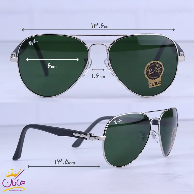ابعاد عینک آفتابی ری بن مردانه نقره ای شیشه سبز RB 5289/2