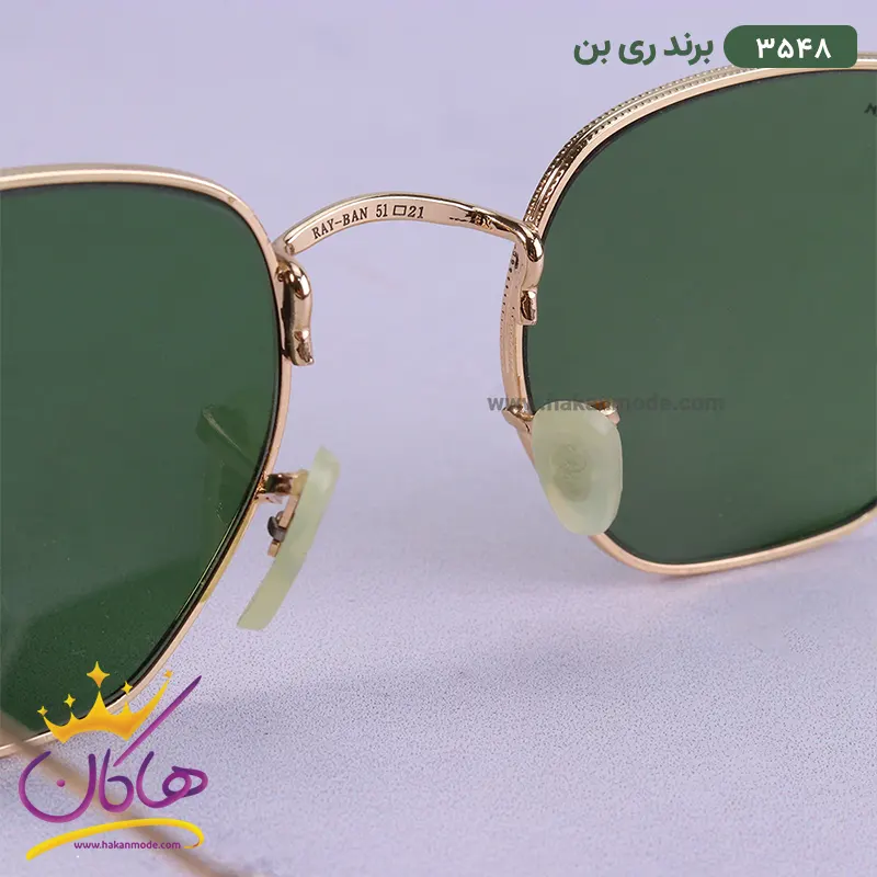 فریم این عینک که مهمترین قسمت آن است از نوع تمام فریم و به شکل چند ضلعی است. این فریم طلایی جذاب به خوبی روی چشم قرار می گیرد. ابعاد عینک آفتابی ری بن مردانه 3548 با پهنای حدود 12.4سانتیمتر است. افرادی که صورتهای مثلثی، مربعی، دایره و بیضی دارند، از طرفداران این مدل عینک هستند. پل عینک، فلزی و بینی گیر لاستیکی آن، بسیار نرم و منعطف است. رنگ عدسی سبز و عرض آن حدود 5 سانت است و چشم را کامل میپوشاند و در وسعت دید اشکالی به وجود نمیآورد. عرض پل 2.4 سانت است و به خوبی روی بینی مینشیند. دسته عینک به رنگ طلایی و ظریف و شیک است. طول دسته حدود 13.5 سانتیمتر است و یک لایه لاستیکی نرم بی رنگ در قسمت انتهایی آن وجود دارد و به راحتی پشت گوش قرار میگیرد. سبکی این عینک کمک میکند تا ساعتهای طولانی عینک را به چشم بزنید و ابدا در قسمت گوشها یا بینی احساس سنگینی و خستگی نکنید.