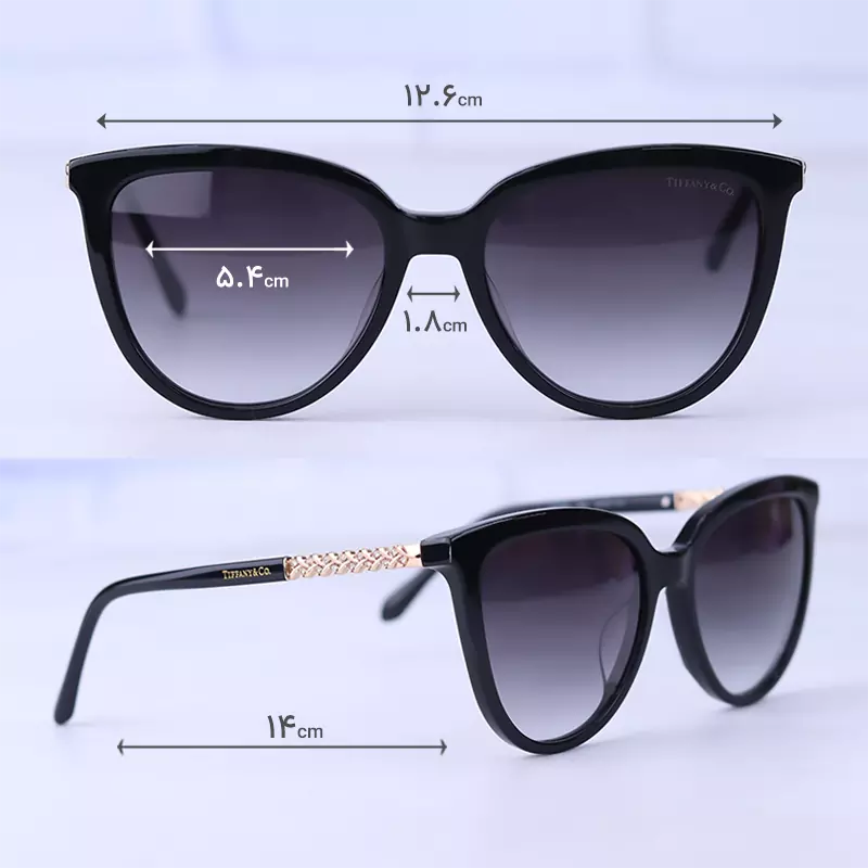 ابعاد عینک آفتابی زنانه تیفانی فریم پروانه ای مشکی TF 4386/1