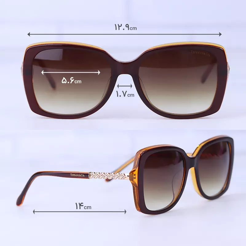ابعاد عینک آفتابی زنانه تیفانی قهوه ای فریم پروانه ای TF 4385/2