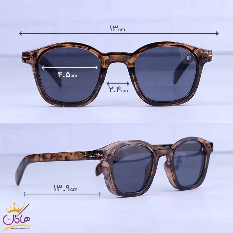 ابعاد عینک آفتابی زنانه دیوید بکام قهوه ای شیشه مشکی 2438/5