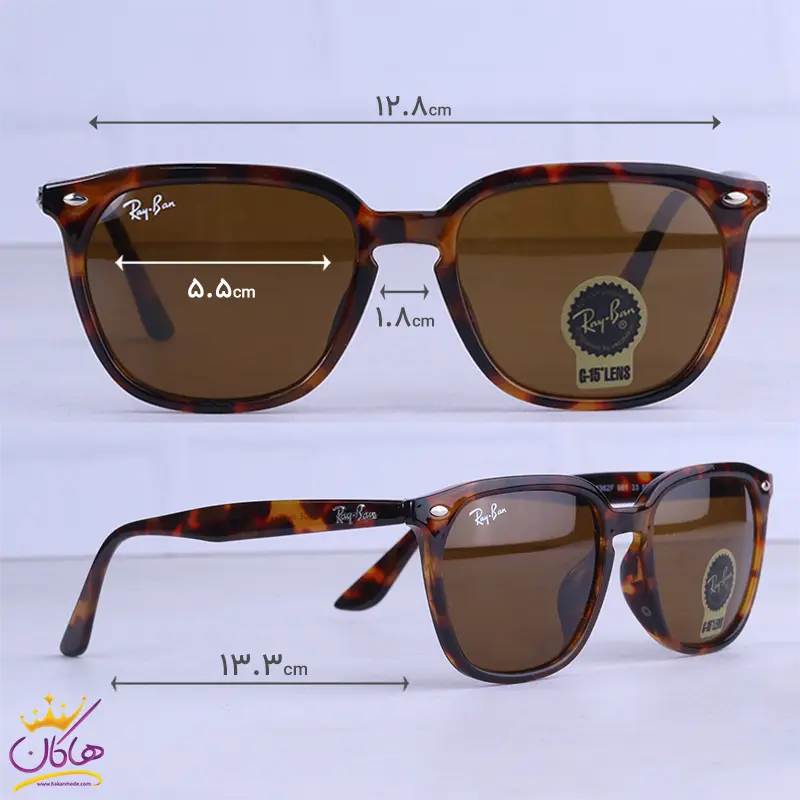 ابعاد عینک آفتابی زنانه ری بن فریم مربع پلنگی RB 4362F/2