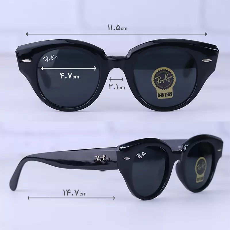 ابعاد عینک آفتابی زنانه ری بن فریم ویفرر شیشه مشکی RB 2192-F/2