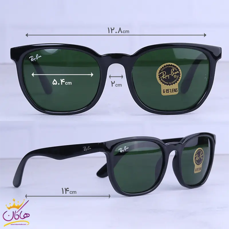 ابعاد عینک آفتابی زنانه ری بن مشکی شیشه سبز RB 43901/1