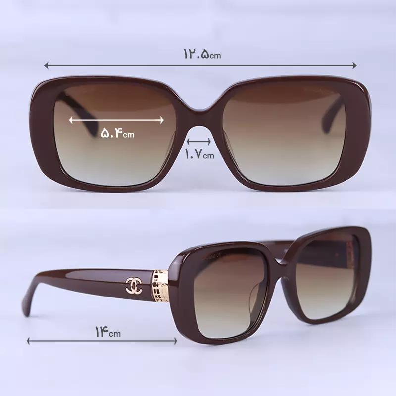 فریم این عینک که مهمترین قسمت آن است از نوع تمام فریم و به شکل مستطیل است. افرادی که صورتهای گرد، بیضی و قلبی دارند، از طرفداران این مدل عینک هستند. پهنای عینک آفتابی زنانه چنل حدود 12.5 سانتیمتر است. رنگ عدسی قهوهای و عرض آن حدود 5.4 سانت است و چشم را کامل میپوشاند و در وسعت دید اشکالی به وجود نمیآورد. پل عینک، کائوچو و بینی گیر آن از جنس بدنه عینک است. عرض پل 1.7 سانت است و به خوبی روی بینی مینشیند. دسته عینک قهوهای و پهن است که لوگوی برند شنل روی آن دیده میشود. طول دسته حدود 14 سانتیمتر است و با یک قوس ملایم تا پشت گوش میرود. اگر به درون دسته توجه کنید سیم کشی فلزی داخل آن را میبینید که به استحکام فریم کمک میکند به این مدل دسته و فریم به اصطلاح استیت یا استات گفته میشود. سبکی این عینک کمک میکند تا ساعتهای طولانی یا هنگام رانندگی، عینک را به چشم بزنید و ابدا در قسمت گوشها یا بینی احساس سنگینی و خستگی نکنید.