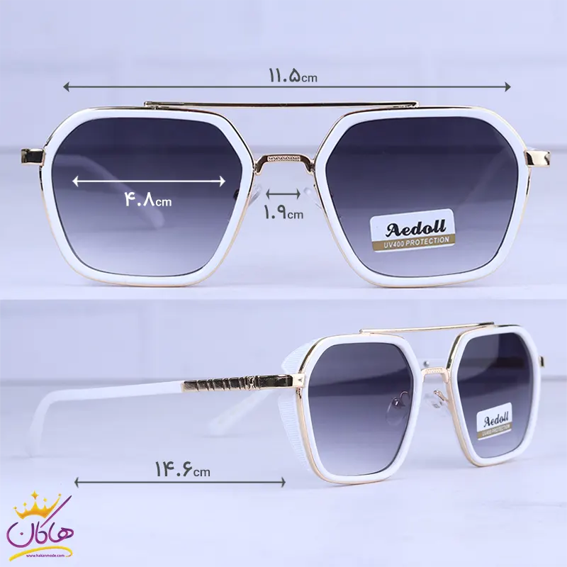 ابعاد عینک آفتابی زنانه فریم فلزی سفید طلایی 6079/4
