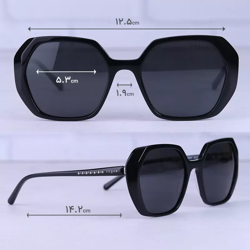 ابعاد عینک آفتابی زنانه ووگ فریم مشکی چند ضلعی استیت S 8591/1