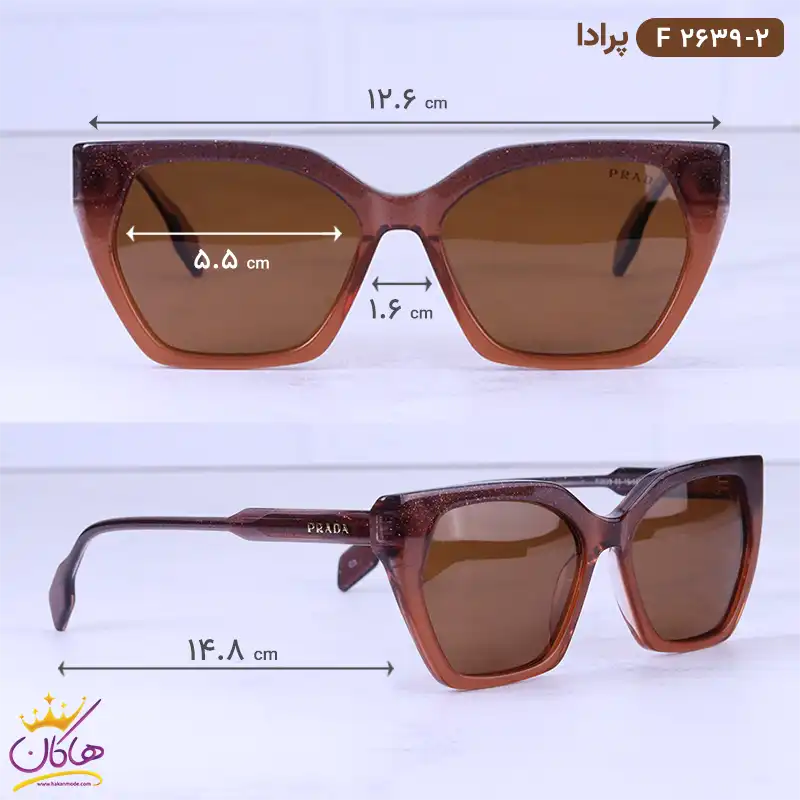 ابعاد عینک آفتابی زنانه پرادا گربه ای قهوه ای PR 2639/2