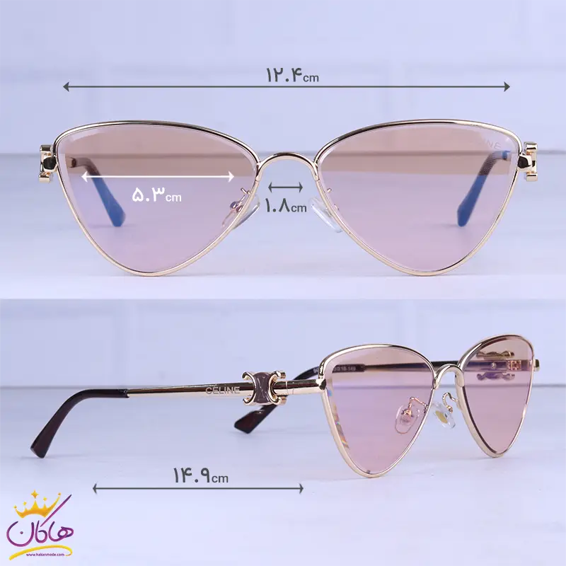 ابعاد عینک آفتابی سلین زنانه فریم مثلث فلزی طلایی 5G128/2