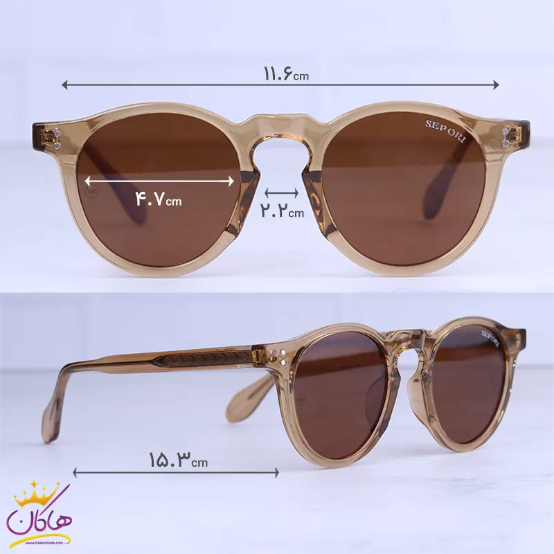 ابعاد عینک آفتابی سپوری زنانه فریم قهوه ای گرد 581012/5