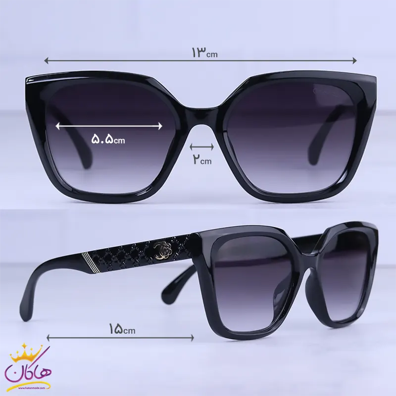 ابعاد عینک آفتابی شنل زنانه فریم مربع مشکی 8906/3