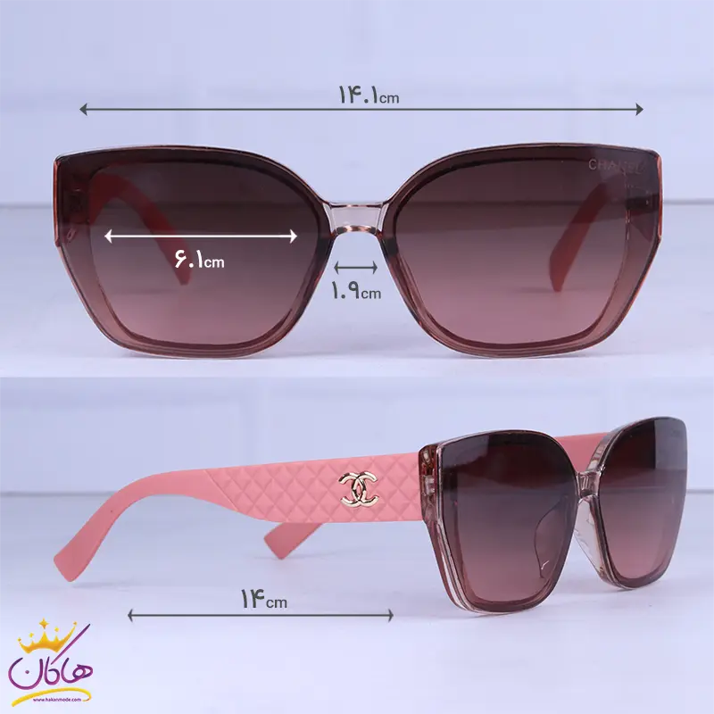 فریم این عینک که مهمترین قسمت آن است از نوع تمام فریم و به شکل پروانهای است. افرادی که صورتهای مربع و لوزی دارند، از طرفداران پروپاقرص این مدل عینک هستند. عرض عینک آفتابی چنل حدود 14.1 سانتیمتر است. پل عینک، کائوچو و بینی گیر آن از جنس بدنه عینک است. عرض پل 1.9 سانت است و به خوبی روی بینی مینشیند. رنگ عدسی قهوهای و عرض آن حدود 6.1 سانت است و چشم را کامل میپوشاند و در وسعت دید اشکالی به وجود نمیآورد. دسته عینک صورتی رنگ و نسبتا پهن است و لوگوی برند شنل روی دسته دیده میشود و طول دسته حدود 14 سانتیمتر است. سبکی این عینک کمک میکند تا ساعتهای طولانی عینک را به چشم بزنید و ابدا در قسمت گوشها یا بینی احساس سنگینی و خستگی نکنید.