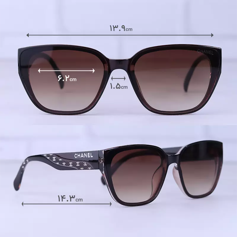 فریم این عینک که مهمترین قسمت آن است از نوع تمام فریم و به شکل پروانهای است. افرادی که صورتهای مربع و لوزی دارند، از طرفداران پروپاقرص این مدل عینک هستند. عرض عینک آفتابی شنل حدود 13.9 سانتیمتر است. پل عینک، کائوچو و بینی گیر آن از جنس بدنه عینک است. عرض پل 1.5 سانت است و به خوبی روی بینی مینشیند. رنگ عدسی قهوهای و عرض آن حدود 6.2 سانت است و چشم را کامل میپوشاند و در وسعت دید اشکالی به وجود نمیآورد. دسته عینک به رنگ قهوهای و طرحدار است که نام برند چنل به صورت درشت دیده میشود و طول دسته حدود 14.3 سانتیمتر است. سبکی این عینک کمک میکند تا ساعتهای طولانی عینک را به چشم بزنید و ابدا در قسمت گوشها یا بینی احساس سنگینی و خستگی نکنید.