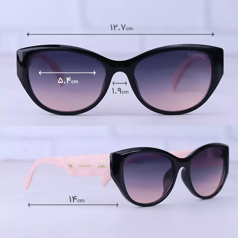 ابعاد عینک آفتابی شنل زنانه فریم گربه ای مشکی صورتی 9704/6