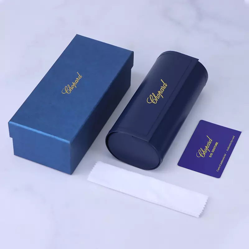 فریم این عینک که مهمترین قسمت آن است به شکل گربهای و تمام فریم است. این فریم مشکی جذاب به خوبی روی چشم قرار میگیرد. عینک آفتابی شوپارد زنانه با پهنای حدود 12.7 سانتیمتر تقریبا برای صورتهای مربع و لوزی شکل مناسب است. پل عینک، کائوچو و بینی گیر آن از جنس بدنهی عینک است. رنگ عدسی مشکی و عرض آن حدود 5.5 سانت است و چشم را کامل میپوشاند و در وسعت دید اشکالی به وجود نمیآورد. عرض پل 1.7 است و به خوبی روی بینی مینشیند. دستههای این عینک مشکی و ظریف با جزئیات نگینکاریشده هستند که جلوهای لوکس و زیبا به آن بخشیدهاند. طول دسته حدود 14 سانتیمتر است. سبکی این عینک کمک می کند تا ساعتهای طولانی یا هنگام رانندگی، عینک را به چشم بزنید و ابدا در قسمت گوشها یا بینی احساس سنگینی و خستگی نکنید.