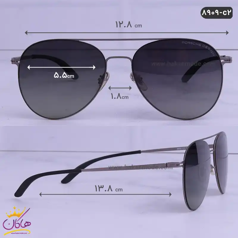 ابعاد عینک آفتابی طوسی مشکی پورشه اصل مدل 8909