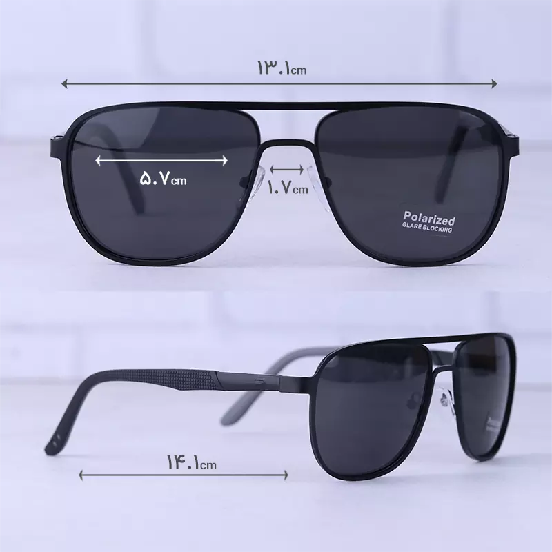 ابعاد عینک آفتابی فریم خلبانی فلزی مشکی پلاریزه 7019/2