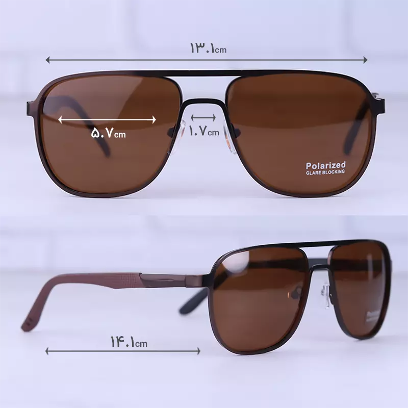 ابعاد عینک آفتابی فریم فلزی قهوه ای پلاریزه 7019/3