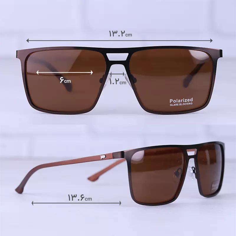 ابعاد عینک آفتابی فریم مستطیل قهوه ای پلاریزه 2631/2