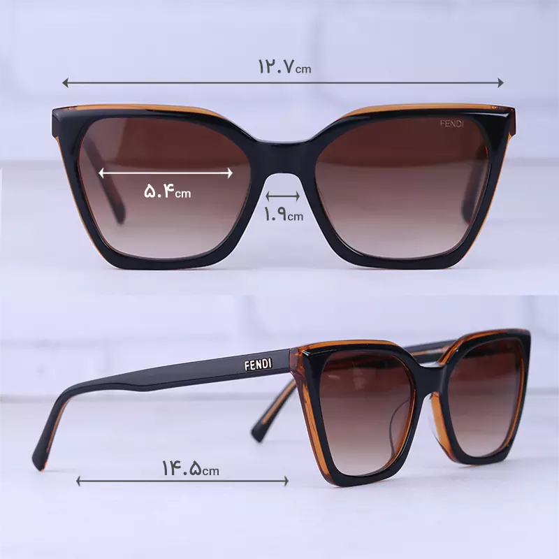 فریم این عینک که مهمترین قسمت آن است از نوع تمام فریم و به شکل گربهای است. این فریم قهوهای به خوبی روی چشم قرار می گیرد. پهنای عینک آفتابی فندی زنانه حدود 12.7 سانتیمتر است. افرادی که صورتهای مربع و لوزی دارند، از طرفداران این مدل عینک هستند. پل عینک، کائوچو و بینی گیر آن از جنس بدنه عینک است. رنگ عدسی قهوهای و عرض آن حدود 5.4 سانت است و چشم را کامل میپوشاند و در وسعت دید اشکالی به وجود نمیآورد. عرض پل 1.9 سانت است و به خوبی روی بینی مینشیند. دسته عینک قهوهای و ظریف است که در قسمت ابتدایی آن نام برند فندی نوشته شده است. طول دسته حدود 14.5 سانتیمتر است و با یک قوس ملایم تا پشت گوش میرود. اگر به درون دسته توجه کنید سیم کشی فلزی درون آن را میبینید که به استحکام فریم کمک میکند. سبکی این عینک کمک میکند تا ساعتهای طولانی یا هنگام رانندگی، عینک را به چشم بزنید و ابدا در قسمت گوشها یا بینی احساس سنگینی و خستگی نکنید.