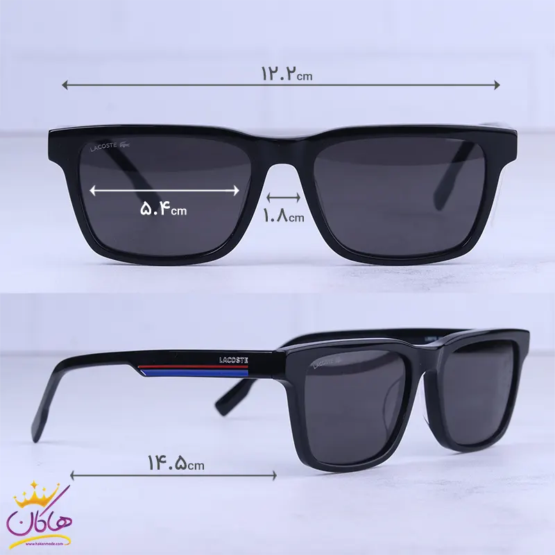 ابعاد عینک آفتابی لاگوست مردانه فریم مستطیل مشکی L 997S/1
