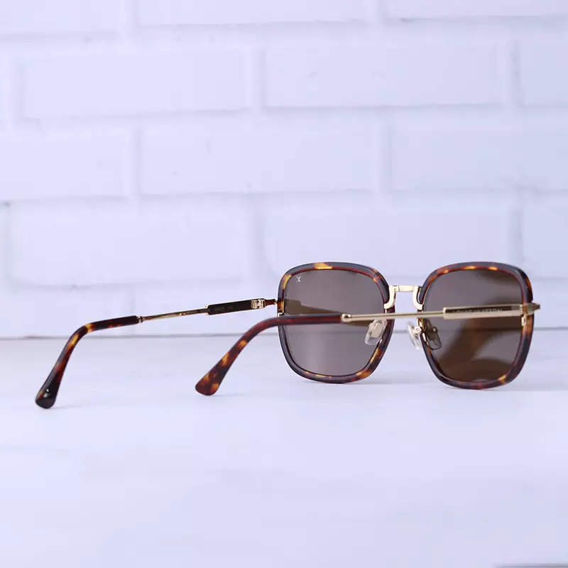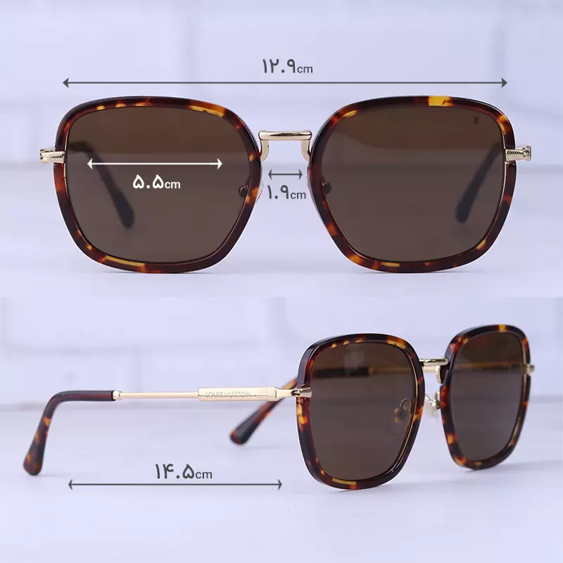 فریم این عینک که مهمترین قسمت آن است به شکل مربع و تمام فریم است. این فریم هاوانا جذاب به خوبی روی چشم قرار میگیرد. عینک آفتابی لویی ویتون زنانه با پهنای حدود 12.9 سانتیمتر تقریبا برای صورتهای گرد، بیضی و قلبی شکل مناسب است. پل عینک، فلزی و بینی گیر آن لاستیکی بی رنگ و بسیار نرم و منطف است. رنگ عدسی قهوهای و عرض آن حدود 5.5 سانت است و چشم را کامل میپوشاند و در وسعت دید اشکالی به وجود نمیآورد. عرض پل 1.9 است و به خوبی روی بینی مینشیند. دستههای این عینک فلزی طلایی با طراحی ظریف جلوهای لوکس و زیبا به آن بخشیدهاند. طول دسته حدود 14.5 سانتیمتر است. سبکی این عینک کمک می کند تا ساعتهای طولانی یا هنگام رانندگی، عینک را به چشم بزنید و ابدا در قسمت گوشها یا بینی احساس سنگینی و خستگی نکنید.