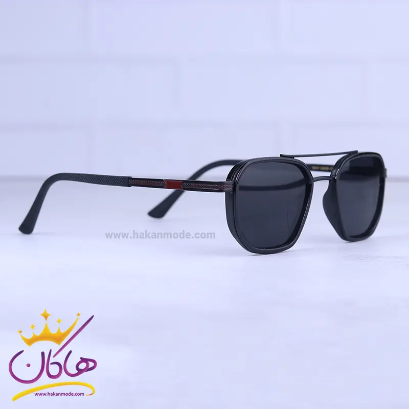 فریم این عینک که مهمترین قسمت آن است از نوع تمام فریم و به شکل چندضلعی است. افرادی که صورتهای گرد و بیضی دارند، از طرفداران پروپاقرص این مدل عینک هستند. عرض عینک آفتابی مردانه تمام مشکی 5607/1 حدود 13 سانتیمتر است. پل عینک، فلزی و بینی گیر آن از جنس کائوچو است. عرض پل 1.8 سانت است و به خوبی روی بینی مینشیند. رنگ عدسی مشکی و عرض آن حدود 5.6 سانت است و چشم را کامل میپوشاند و در وسعت دید اشکالی به وجود نمیآورد. دسته عینک به رنگ مشکی با طرحی قهوهای، ظریف و شیک است. طول دسته حدود 13.8 سانتیمتر است. سبکی این عینک کمک میکند تا ساعتهای طولانی عینک را به چشم بزنید و ابدا در قسمت گوشها یا بینی احساس سنگینی و خستگی نکنید.