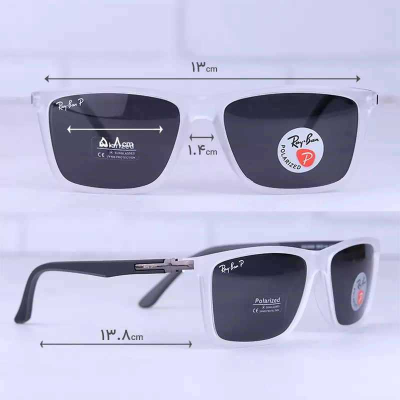 ابعاد عینک آفتابی مردانه ری بن سفید پلاریزه RB 3568/3