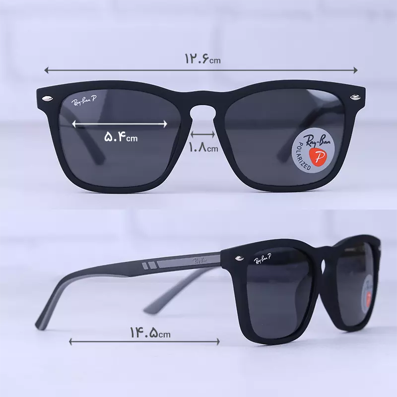 ابعاد عینک آفتابی مردانه ری بن فریم مشکی پلاریزه RB 4405/3