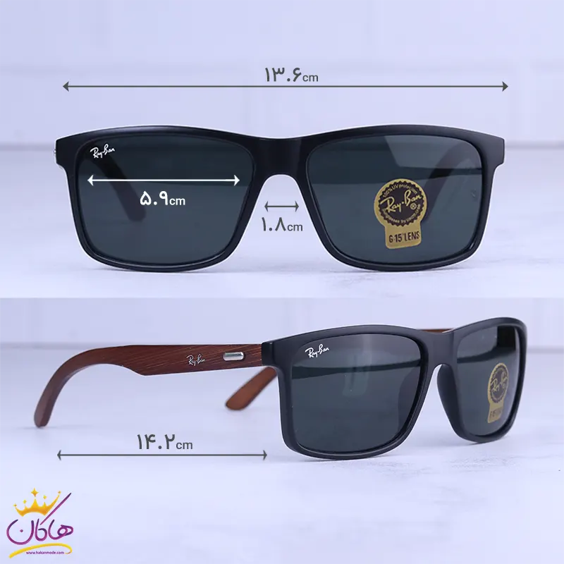 ابعاد عینک آفتابی مردانه ری بن فریم مشکی RB 8303/5