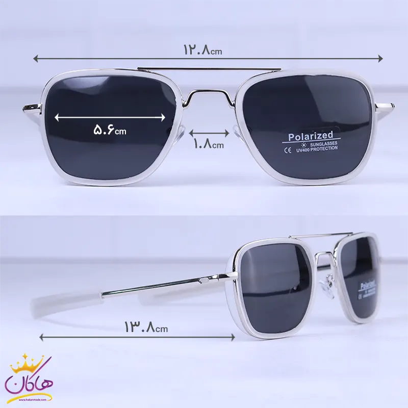 ابعاد عینک آفتابی مردانه سفید شیشه مشکی P 10-10/2