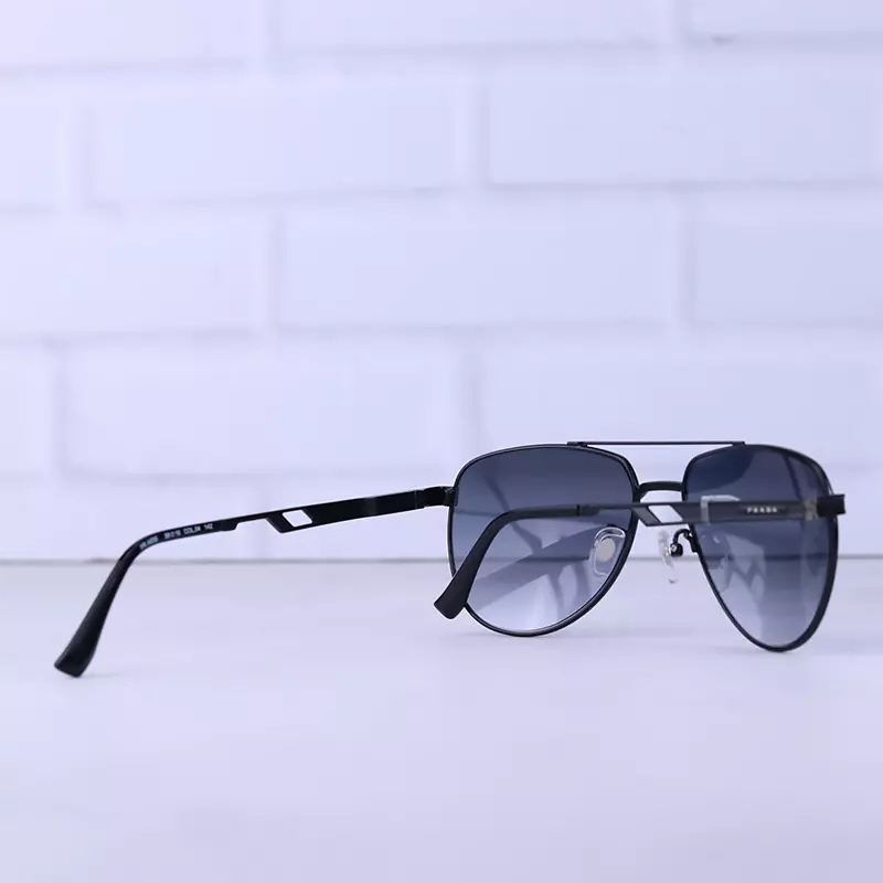 فریم این عینک که مهمترین قسمت آن است از نوع تمام فریم و به شکل خلبانی است. این فریم مشکی جذاب به خوبی روی چشم قرار می گیرد. این عینک با دیدن حرارت یا هنگامی که در معرض بازدم قرار بگیرد لوگو روی شیشه نمایان میشود که نشانه اصل بودن این محصول است. این ویژگی را به راحتی نمیتوان کپی کرد. ابعاد عینک آفتابی پرادا مردانه با پهنای حدود 13.2 سانتیمتر است. فریم خلبانی از معدود مدلهایی است که تقریبا به تمام صورتها میآید اما افرادی که صورتهای مثلثی، مربعی، گرد و بیضی دارند، از طرفداران پروپاقرص این مدل عینک هستند. پل عینک، فلزی و بینی گیر لاستیکی آن، بسیار نرم و منعطف است. رنگ عدسی مشکی و عرض آن حدود 5.8 سانت است و چشم را کامل میپوشاند و در وسعت دید اشکالی به وجود نمیآورد. عرض پل 1.6 سانت است و به خوبی روی بینی مینشیند. دسته عینک به رنگ مشکی و ظریف و شیک است و در ابتدای آن نام برند پرادا دیده میشود. طول دسته حدود 14.2 سانتیمتر است که با قوس ملایم به پشت گوش میرسد. سبکی این عینک کمک میکند تا ساعتهای طولانی عینک را به چشم بزنید و ابدا در قسمت گوشها یا بینی احساس سنگینی و خستگی نکنید.