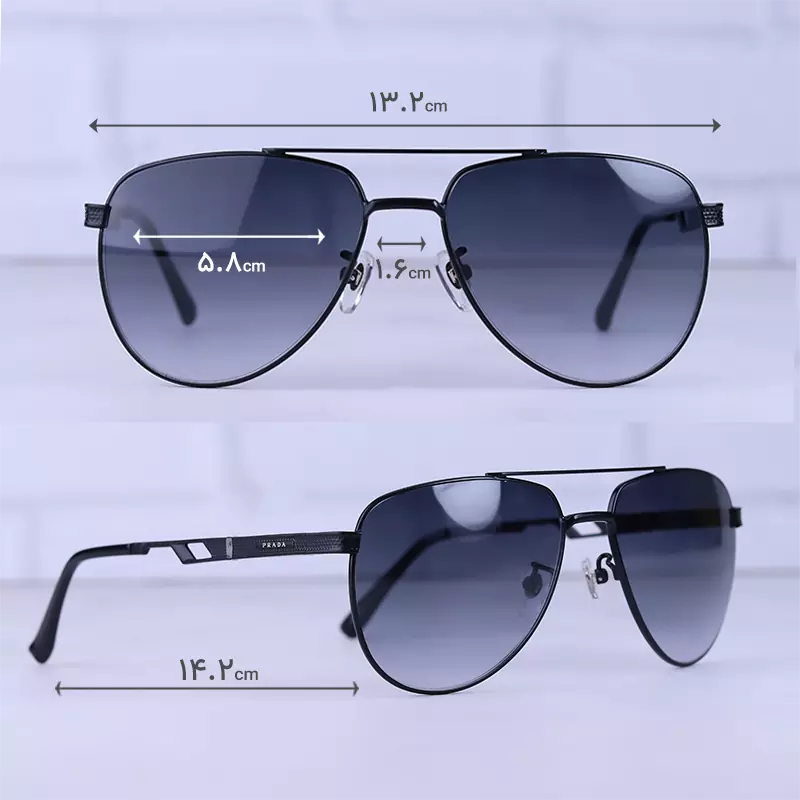ابعاد عینک آفتابی مردانه پرادا فریم خلبانی مشکی PR A53S/4