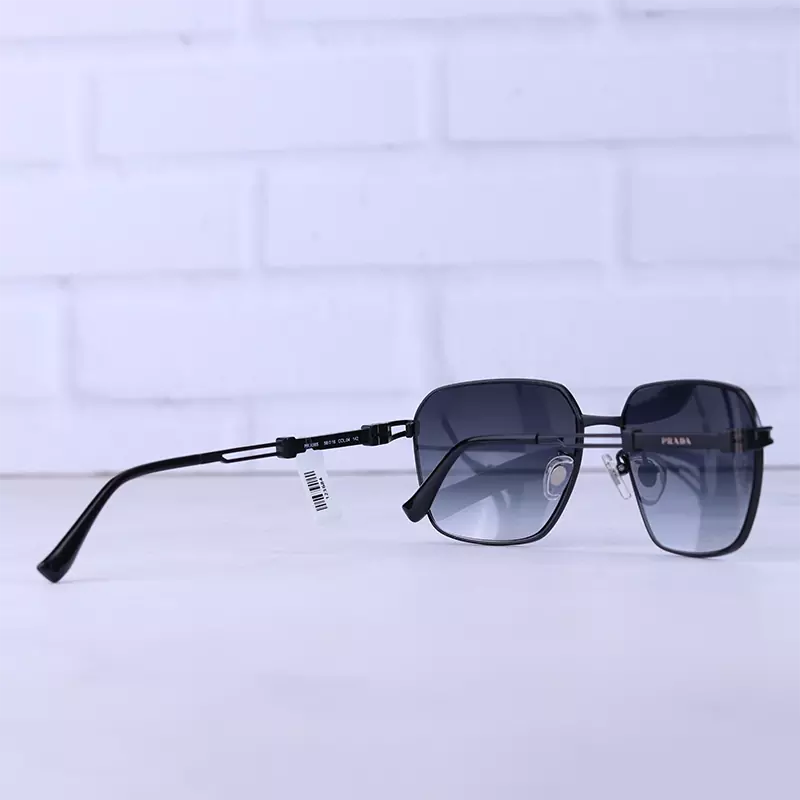 فریم این عینک که مهمترین قسمت آن است از نوع تمام فریم و به شکل مربع است. این فریم مشکی جذاب به خوبی روی چشم قرار می گیرد. این عینک با دیدن حرارت یا هنگامی که در معرض بازدم قرار بگیرد لوگو روی شیشه نمایان میشود که نشانه اصل بودن این محصول است. این ویژگی را به راحتی نمیتوان کپی کرد. ابعاد عینک آفتابی پرادا مردانه با پهنای حدود 13.2 سانتیمتر است. این مدل فریم تقریبا به تمام صورتها میآید اما افرادی که صورتهای قلبی، گرد و بیضی دارند، از طرفداران پروپاقرص این مدل عینک هستند. پل عینک، فلزی و بینی گیر لاستیکی آن، بسیار نرم و منعطف است. رنگ عدسی مشکی و عرض آن حدود 5.8 سانت است و چشم را کامل میپوشاند و در وسعت دید اشکالی به وجود نمیآورد. عرض پل 1.6 سانت است و به خوبی روی بینی مینشیند. دسته عینک به رنگ مشکی و ظریف و شیک است و در ابتدای آن نام برند پرادا دیده میشود. طول دسته حدود 14.2 سانتیمتر است که با قوس ملایم به پشت گوش میرسد. سبکی این عینک کمک میکند تا ساعتهای طولانی عینک را به چشم بزنید و ابدا در قسمت گوشها یا بینی احساس سنگینی و خستگی نکنید.