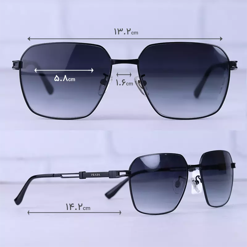 ابعاد عینک آفتابی مردانه پرادا فریم مربع مشکی PR A56S/4