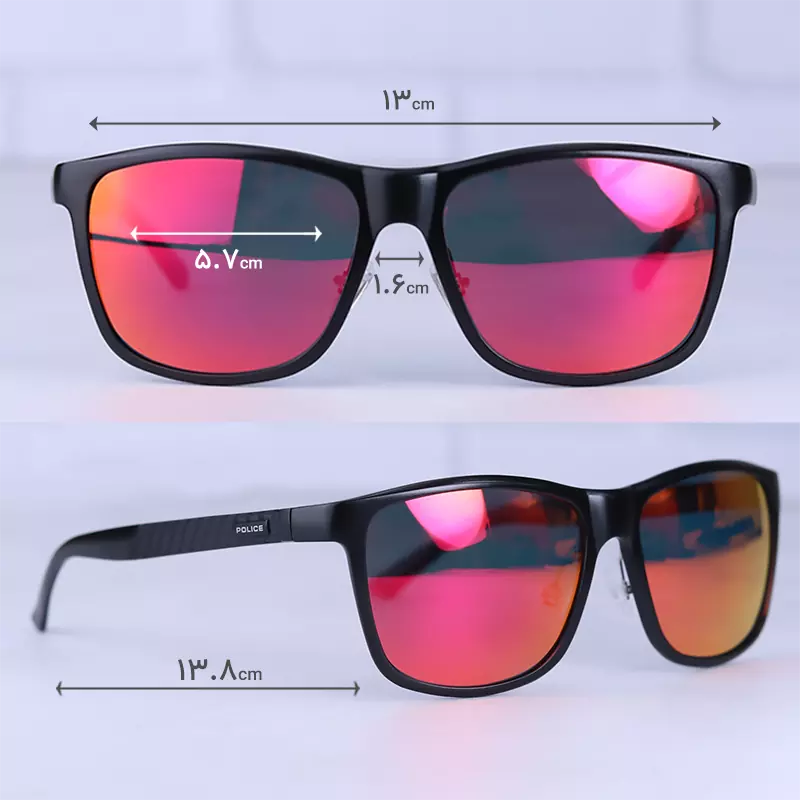 ابعاد عینک آفتابی مردانه پلیس آلومینیوم شیشه جیوه ای 8587/2