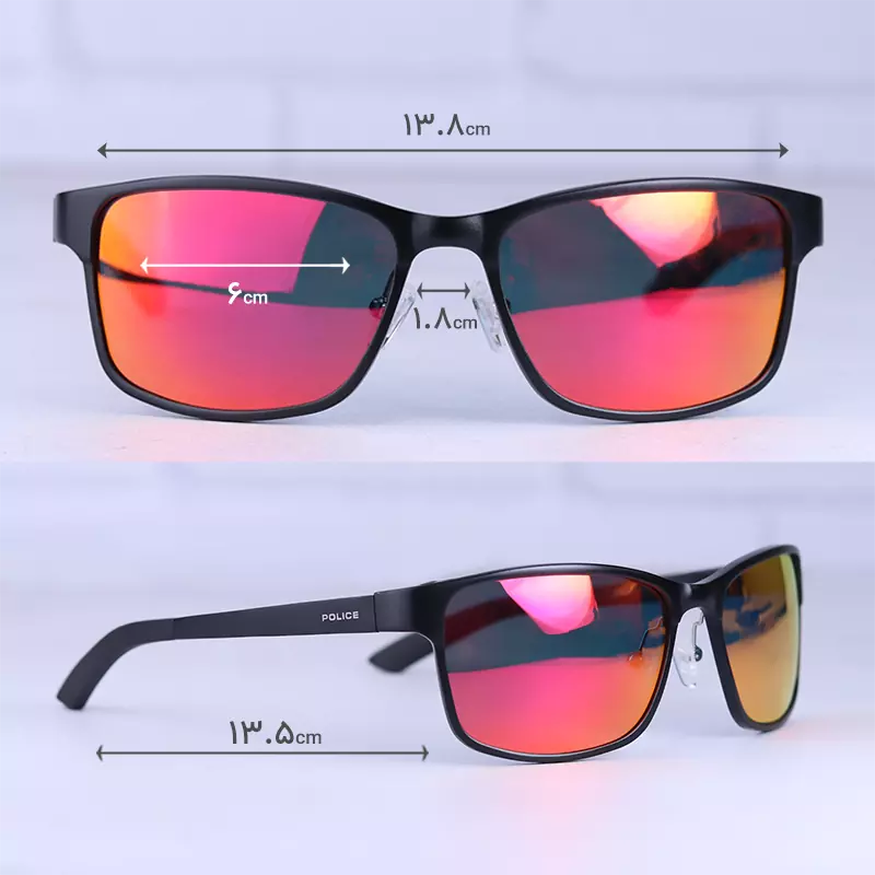 ابعاد عینک آفتابی مردانه پلیس آلومینیوم شیشه جیوه ای قرمز 8508/2