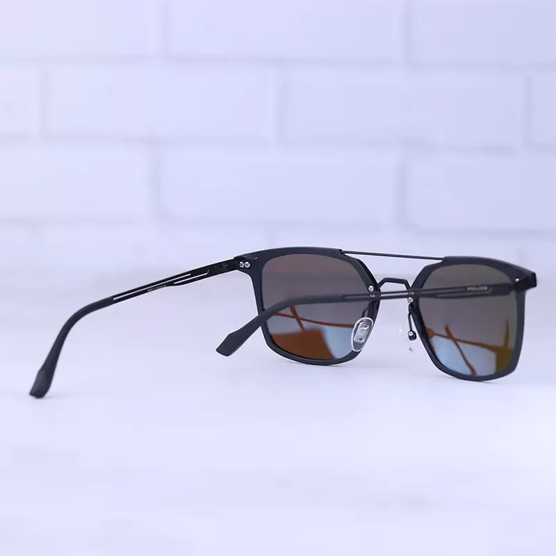 فریم این عینک که مهمترین قسمت آن است از نوع تمام فریم و از مدل مربع است. افرادی که صورتهای گرد، قلبی و بیضی دارند، از طرفداران این مدل عینک هستند. پهنای عینک آفتابی مردانه پلیس حدود 12.2 سانتیمتر است. رنگ عدسی جیوهای آبی و عرض آن حدود 5.3 سانت است و چشم را کامل میپوشاند و در وسعت دید اشکالی به وجود نمیآورد. پل عینک از جنس بدنه عینک و بینی گیر لاستیکی آن، بسیار نرم و منعطف است. عرض پل 1.6 سانت است و به خوبی روی بینی مینشیند. دسته عینک مشکی است که در قسمت ابتدایی آن نام برند پلیس نوشته شده است. طول دسته حدود 13.8 سانتیمتر است و با یک قوس ملایم تا پشت گوش میرود. سبکی این عینک کمک میکند تا ساعتهای طولانی یا هنگام رانندگی، عینک را به چشم بزنید و ابدا در قسمت گوشها یا بینی احساس سنگینی و خستگی نکنید.