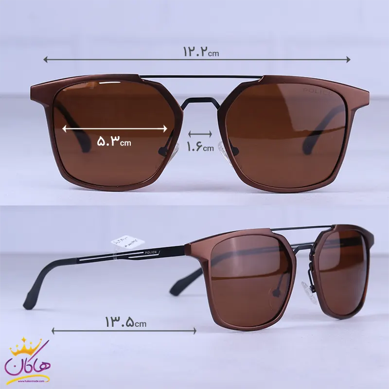 ابعاد عینک آفتابی مردانه پلیس آلومینیوم قهوه ای 8639/2