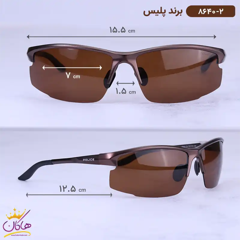 ابعاد عینک آفتابی مردانه پلیس قهوه ای 8640/2