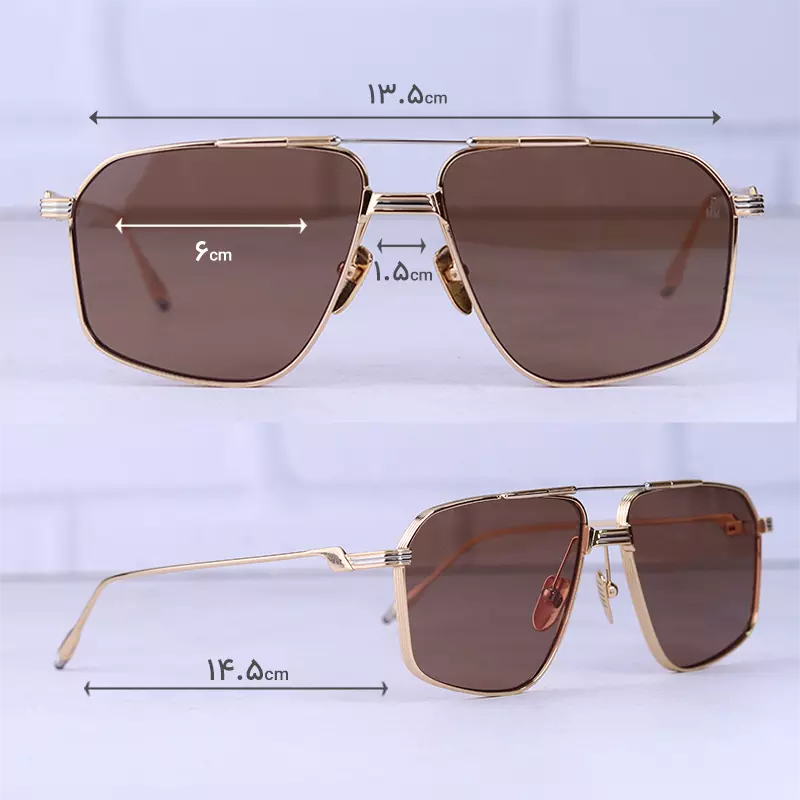 ابعاد عینک آفتابی مردانه ژاک ماری طلایی عدسی قهوه ای JMMJG16J